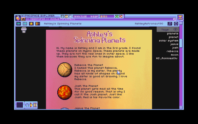 People going into this may think, “Hypnospace Outlaw is laying it too thick with how it portrays websites.” I initially thought that too, since I was not on the internet during this early age, and just thought it was all for the aesthetic. Nope, no. There are many sites dedicated to documenting the reign of Geocites, most prominently One Terabyte of Kilobyte Age, and scrolling through, you can see that Hypnospace Outlaw is actually pretty close to reality, barring the pages that no longer exist.
