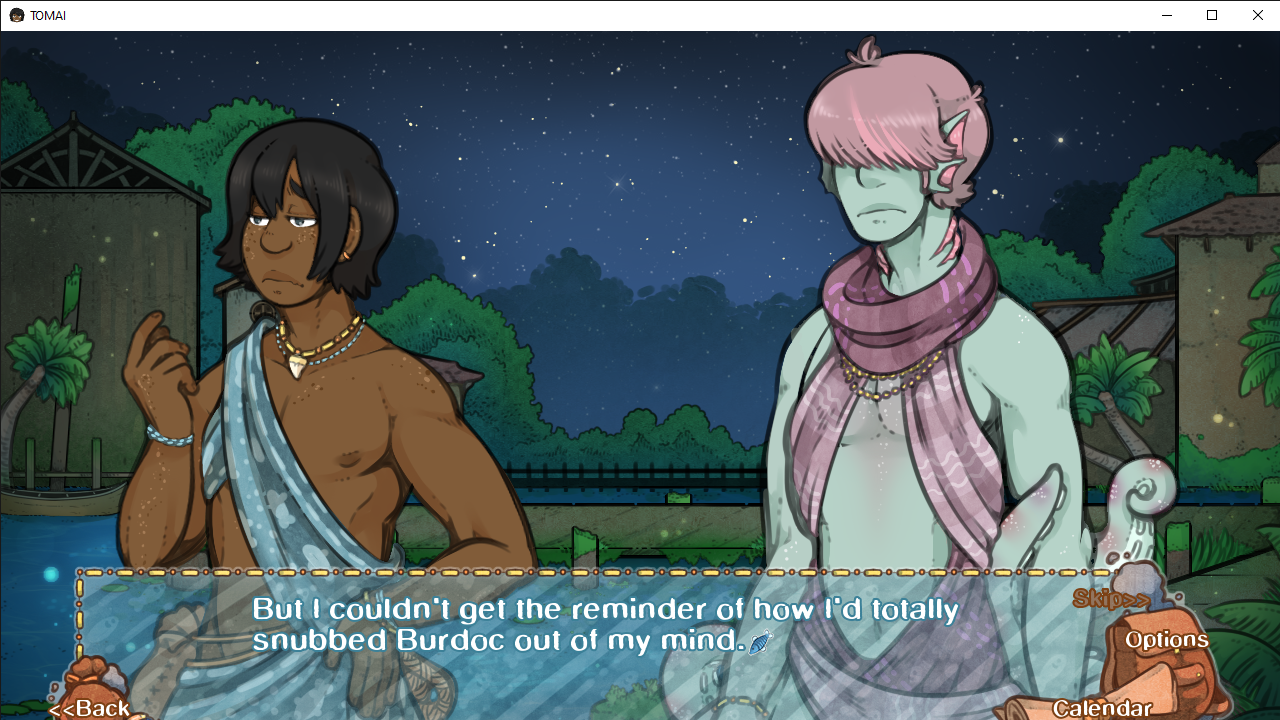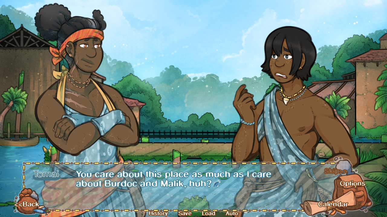 Both of those routes are pretty okay. But let’s be real – the main focus of Tomai is getting the titular character to date his himbo fish friends, Burdoc and Malik.