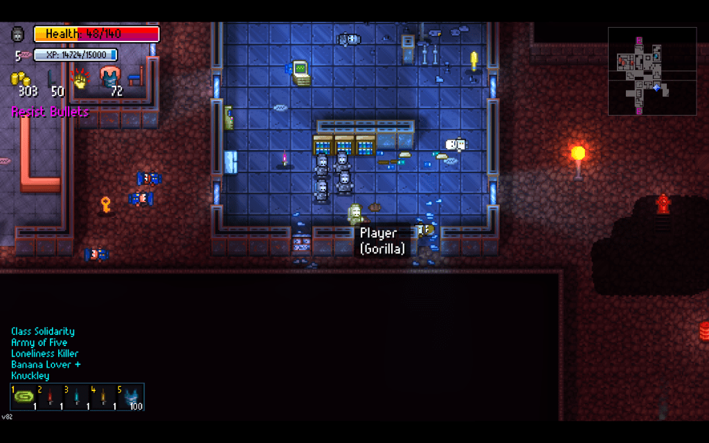 - Teleport-Happy: This allows you to teleport wherever and whenever you want, unless you’re in combat. This is another huge time saver because you no longer have to walk outside of buildings to actually teleport back home and makes the Disaster Levels easier. This and G-P-Yess are the most vital traits you need in a Streets of Rogue speedrun because they save so much time. The earlier you get them, the better. It’s probably optimal to reset runs over and over until you get one or both of them for your first level ups, but I just like to roll with the punches.