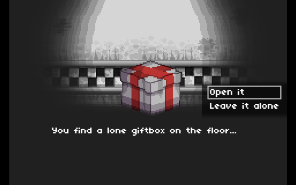 Outside of the Wrong Turns, the game feels more like a standard horror game made in RPG Maker, with you poking around to find stuff to progress. Though, besides one or two instances, the horror aspect is more focused on atmosphere over cheap jump scares. There’s also some goofiness to give levity to the game, but it doesn’t destroy the game’s tone. Like haunted or not, it’s a dumb pizzeria. It’s gonna have goofs.