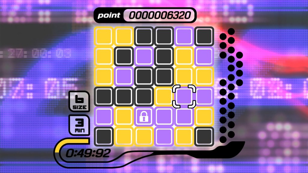 While it may be a hardcore arcade puzzle game, that doesn’t mean there’s no room for accessibility. In Cal’s museum, you can engage in a relaxed game mode where you can just make crosses without worrying about time or score. The fast-paced soundtrack is replaced by ambient noise and that and the designs of the tiles are based on whatever painting you pick, with new ones becoming available when you donate. Outside of that, you may look at the flashy backgrounds trying to invoke the game’s overall aesthetic and think it’s a strain on the eyes, if not actively harmful. Well, you can actually add a filter to make it less of an eyesore or make the backgrounds into static images. They’re simple additions, but they’re simple additions that make the experience welcoming to more players.