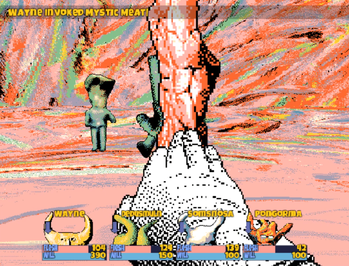 …Well, that’s my takeaway from the game, anyway. A definitive impression I get from Hylics is that it does try to cultivate the power fantasy of being a powerful endgame JRPG party, with an immunity to death to boot. The game does advertise itself as a “recreational program with light JRPG elements,” and what better way to feel at ease than to be all powerful?