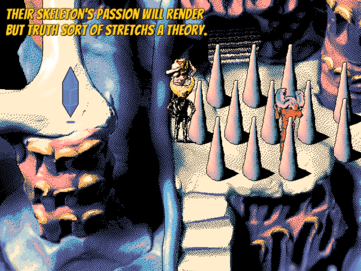 Hylics’ story, as I’ve said before, is really kinda vague and may not be there at all. Only some of the characters say something concrete, while the rest of the game’s dialogue is actually randomly generated. While it fits in line with the absurd nature of the world, I don’t blame anyone for wanting silly handcrafted dialogue instead of a haiku about glands.
