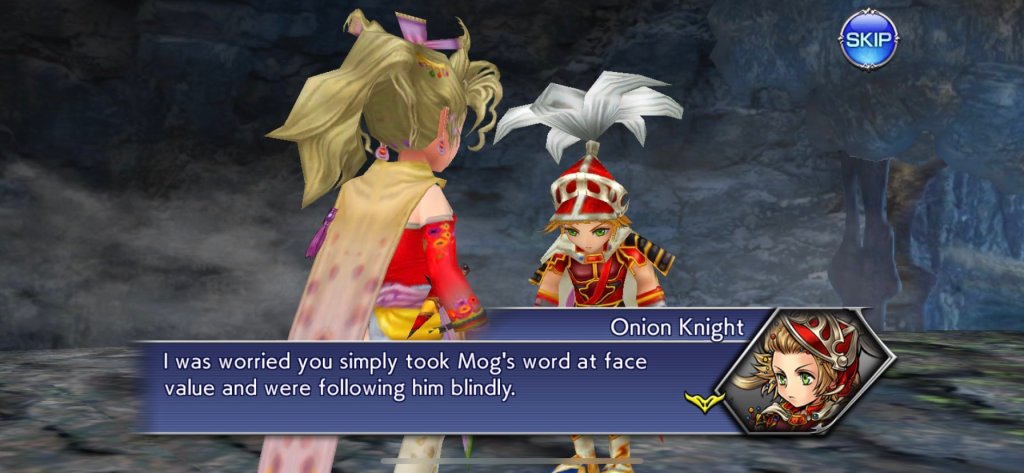 But alas, Onion Knight is still worrying about it. He pulls Terra aside and voices his suspicions of Mog. And he honestly has a point: why is everyone taking the word of this weird Moogle at face value? Anyway, Terra gets it, but the journey will probably lead to them beating the shit out of Kefka, which is an objectively good goal.