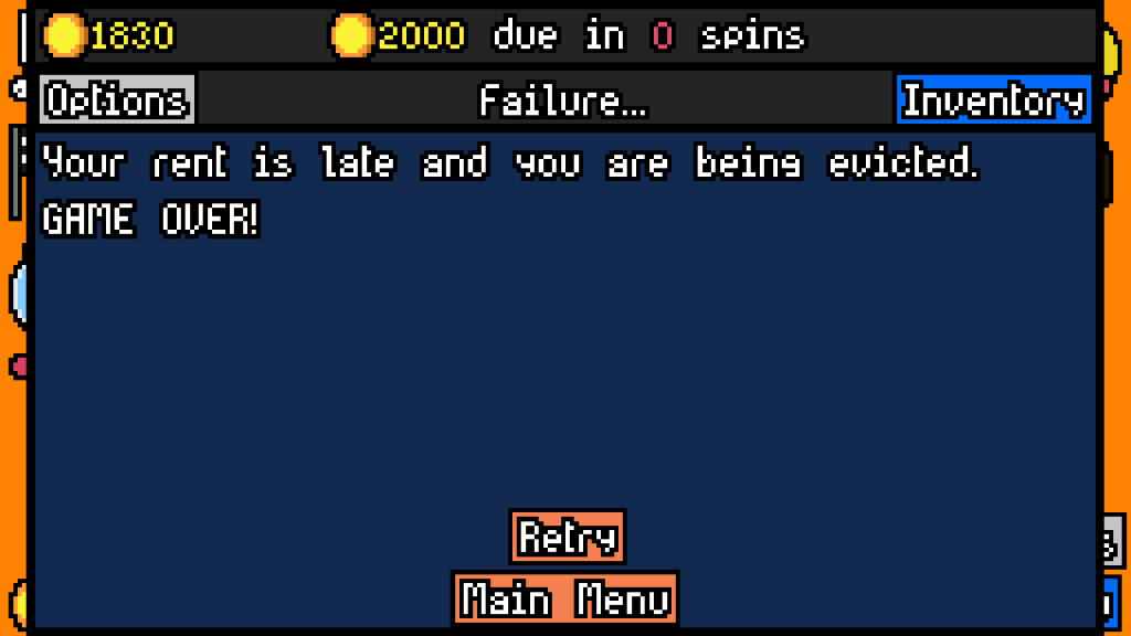 My main criticism of the game as it is so far is that the only challenge lies in making effective symbol pools for the slot machine to pull on. While the rent continues to rise, there are no curveballs thrown your way. There isn’t anything that could counter your own strategies or demand that you switch things up. As soon as you settle into a groove, it’s smooth sailing, with the only challenge being how far you can get through endless mode it you successfully pay off your rent.