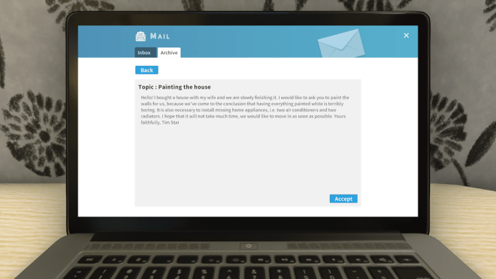 Various clients send you e-mails about needing you to fix up a building. From simply cleaning out a garage to renovating a large building to look like a proper kindergarten to helping some weirdo arm a survival bunker, there’s a lot of people that needs someone as handy as you. Besides getting you money, doing the jobs is important because their objective based structure act as tutorials for the more free-formed house renovations.