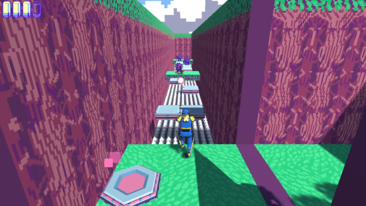 The games start out pretty easy, with the standard enemy just making plain shots forward. Going forward, things get rougher as you run into enemies that shoot in patterns or shoot multiple times. You encounter enemies that actually attempt to aim as well as rockets that home in on you. The Thunder Kid games gradually turn into something akin to a 3D bullet hell, which makes your simple four hitpoint character look really fragile. While checkpoints are frequent and enemies have a random chance of dropping health, the later levels are easily capable of shredding through an inexperienced player – especially as platforming gets tpugher, as stray hits do have knockback that will get you killed.