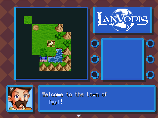 Being made with the default RPG Maker 2000 sprite and tileset assets, LanVodis provides players with the nostalgic feeling of walking around the overworld of an older JRPG. However, LanVodis is not an RPG by any broad definition of the genre. The game’s description page characterizes the gameplay as being about “treasure-hunting and overworld navigation.” LanVodis can be said to be a game about exploration, but at its core, it’s really a game that is about two separate but related things: being lost, and then being found.