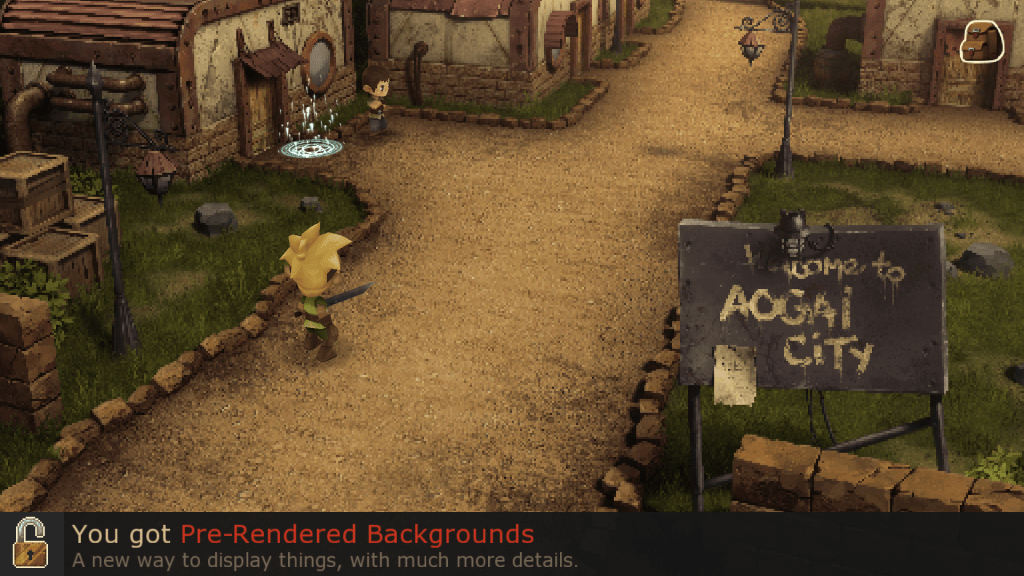 As you proceed through Evoland, more things are added to flesh out the experience. The later game areas change to a simple but cute 3D style, with the fidelity of the textures and music being upgraded toward the end of the game. The Zelda style segments gets more mechanics added on to it, creating a more satisfying experience. As for the RPG side of things? That’s in a bit.