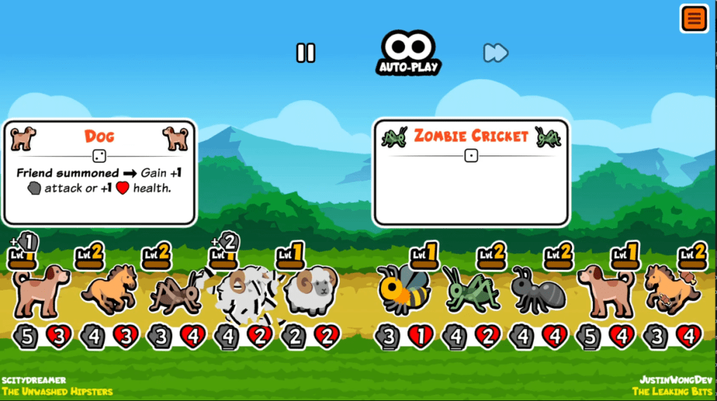 In those games, all the units can be separated into different groups with their own traits to take account for. However, in this game, the animals are all strictly individual with unique functions that are quick to figure out with simple mouse-over tooltips, so you don’t have to worry about grouping up for passive bonuses or whatever. Stats are also super simplified to just “attack” and “health,” with items simply increasing those stats or something else easy to understand.
