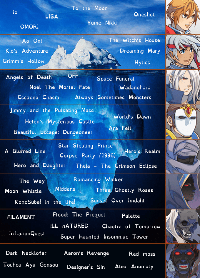 As expected from icebergs, anything at the top layer is stuff that’s readily known, even to people outside of the specific subject. In the case of RPG Maker games, games that are ranked here are the few ones that became mainstream successes.