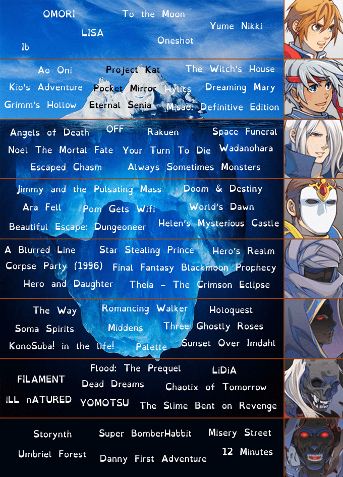 We’re getting into the weeds here. You may notice that some stuff was removed from this iceberg. This is because the iceberg’s creator wanted to highlight games that an English player could conceivably play, given that this is an iceberg aimed at English readers.