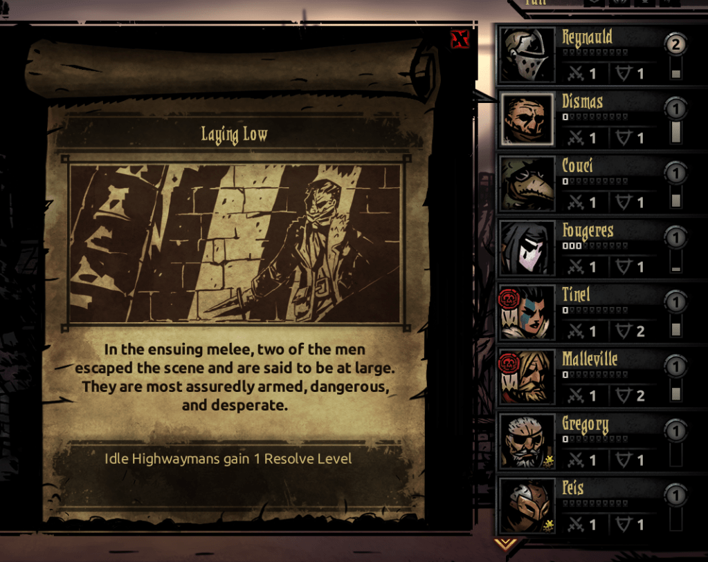 With that, this second week in Darkest Dungeon came to a close. I finally got a better grip on how this game works and I experienced no casualties. Well, casualties that matter. Sorry, Hynde, but may the next Antiquarian not have bones made of glass (copium).