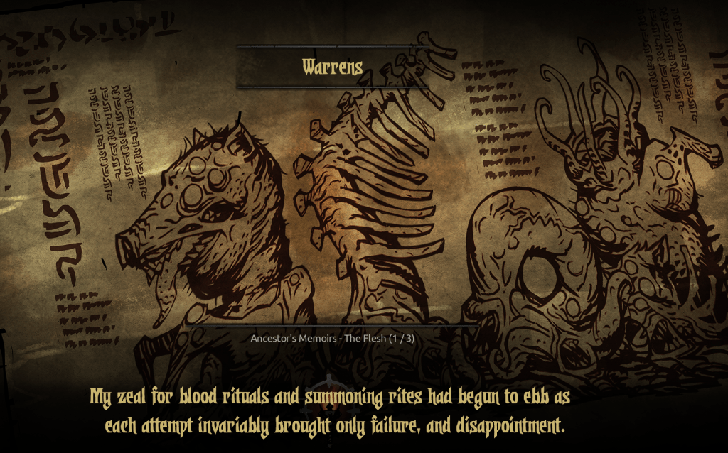 So, there’s one boss that I haven’t faced yet: the Inchoate Flesh, the lowest form of some horrible flesh boss that acts as the area boss of the Warrens alongside the Swine Prince (and its more royal variants). Something I haven’t acknowledged until now is if you do enough missions in a given area, a boss encounter will appear, and it’s honestly no surprise that I haven’t faced the Flesh yet when I haven’t gone to the Warrens that much. And so, I decided to remedy that.