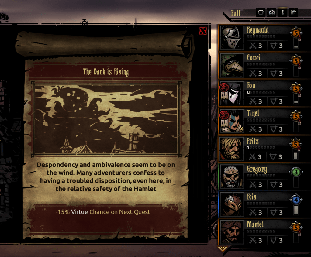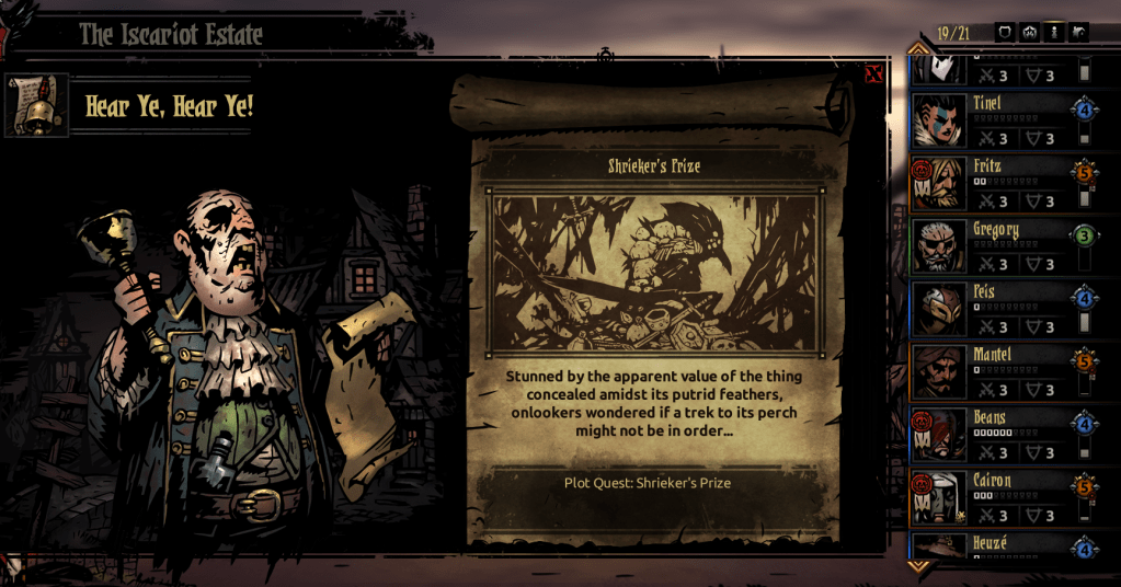 After the tragic loss of Dismas, it became clear to me: the heroes of the Iscariot Estate just aren’t strong enough, yet. We need more power, because it’s clear that whatever’s in the Champion level missions and the Darkest Dungeon will just demolish the heroes.