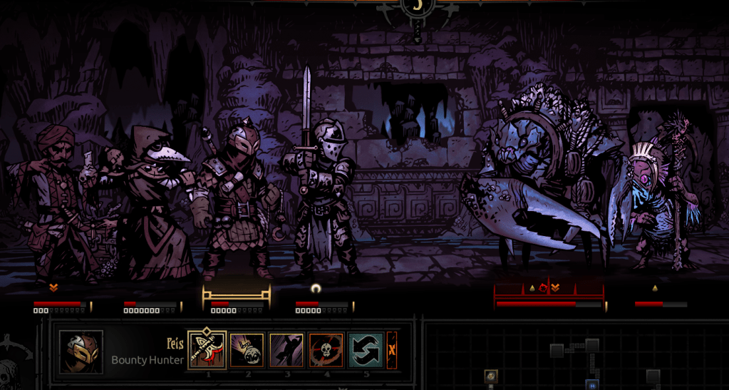Until the team ran into another crab team. Now, besides the presence of the crab, the world decided to spit in my face with the most absurd chances. Mantel tried to heal someone and it not only did 0 but also bled them, the enemies kept dodging attacks – including that giant crab somehow – and Peis and Couci’s attempts to stun the annoying backline kept failing.