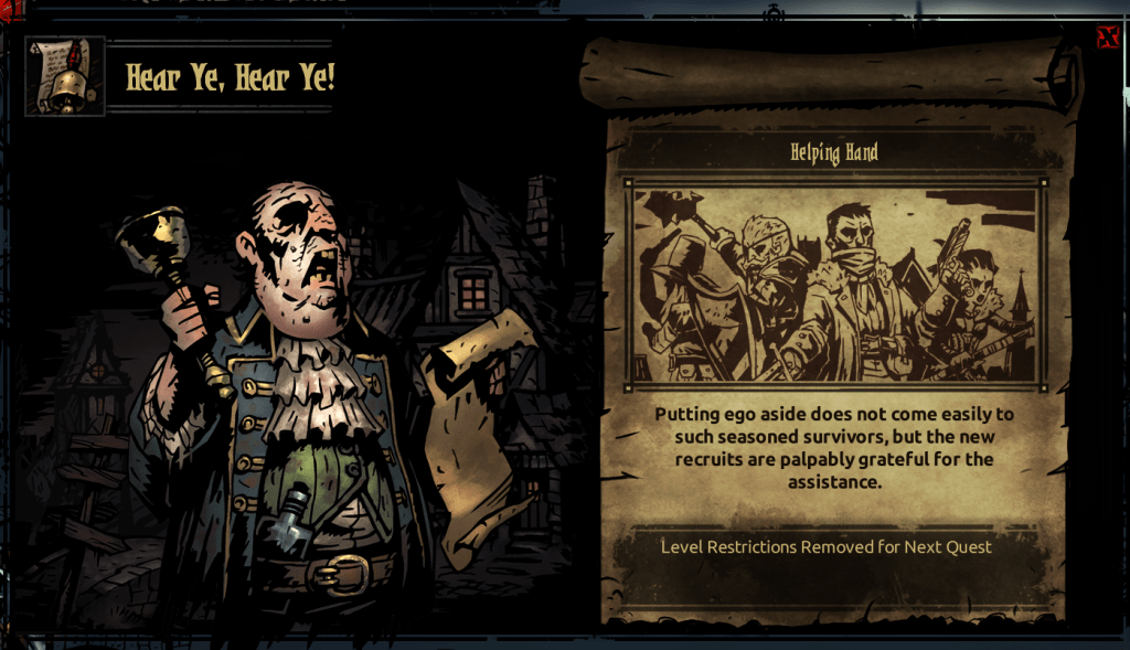Next time, we’ll be taking advantage of the free supplies for a mid-level boss quest, and maybe finally build up the confidence to do a champion level quest. I gotta head into that Darkest Dungeon eventually…