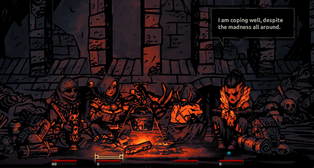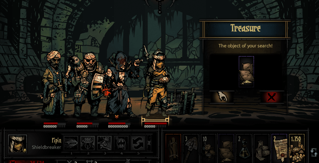 As for the actual mission, well, it went about as well as you’d expect a novice mission should go: uneventful. But that’s good! You gotta take breaks from high pressure situations, and honestly, that’s an interesting part about Darkest Dungeon. Since your higher level guys tend to be susceptible to dying or getting stuck at town to cool down, you’re inevitably pushed to do something easier with a fresher batch of guys. Even as the game pushes you to do harder content, its design innately encourages you to take things easy every so often.