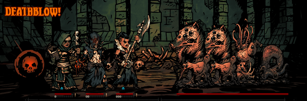 But we don’t need him or his dog, this crew handled things just fine – well, minus Durandal’s cruel and sudden death, of course. With that fight, Beans and Cambrai achieved the highest level achievable in Darkest Dungeon. Cambrai even got a Love Interest to celebrate, good for her. Sorry about the Spotted Fever though, Aubert.