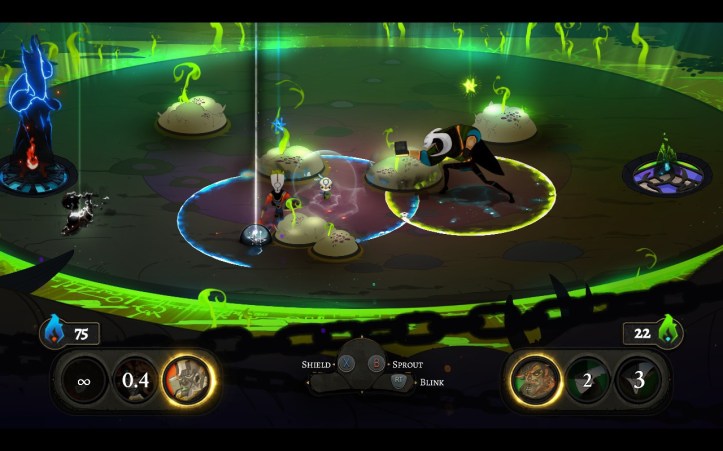 The good news of course is that you can do the same thing, too. Go ham with banishing enemies and carefully position everyone to take up defense while your orb bearer tries to score, in case the enemy respawns and takes it back. It sounds easy, but the game AI is actually pretty smart. The more mobile enemy player types will gladly go for a mad dash when you leave a path open; then as you go for the defense, the AI will quickly switch to another teammate to take out your defenseless players as you banish their goal scorer. The more defensive sap enemies, who place aura generating totems instead of shooting them, will place it in ways to control the play area, if they’re not placing it as an inconvenient defense at their pyre. But, as the enemy teams are reflections of your own, you can learn from their tactics to beef up your own play.