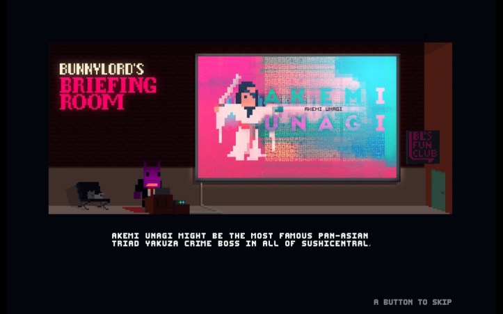 Not a Hero is a game by roll7, the studio most known for their OlliOlli games. However, instead of doing sick skateboarding tricks, you’re going on sick murder sprees, as per a lot of games published in the Devolver Digital catalog. A time traveling giant bunny man is looking to win a mayoral election, but he faces stiff competition. To win, he needs to win the hearts and minds of the people and to do that, he decides to kill all the cartoonish criminals that run the streets. You play as members of the Bunnylord Fun Club, a collection of killers setting out on his command to clean the streets. Whoo boy, this is going to be a normal game to talk about.