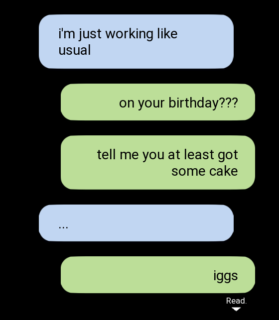 Though! It wasn’t exactly a good example, because the game is meant to completely capture the experience of having a conversation over text. Besides the general informal writing style between friends (?), the game incorporates a lot of pauses between messages often to reflect people taking in messages and working through their responses.
