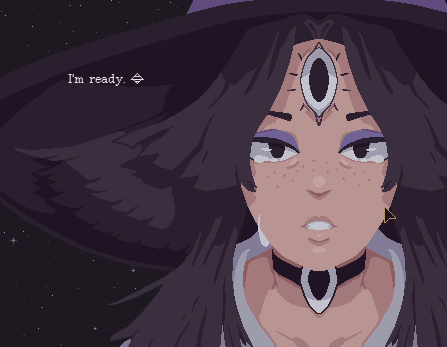 From there, the rest of the game is getting to know and interact with a quite large group of characters. One story in particular, that of a young trans witch in denial of her own self as she gains these powers, was really fucking good. I knew something like this would happen, or atleast premused so when I saw Ty Galiz-Rowe from Uppercut post on twitter that “this one is for the trans girlies.” I trust Ty when it comes to games and knowing what the trans girlies want, as a trans girlie myself. So I am not lying when I say his tweet was the main reason I seeked out this game, and like usual they were fucking right.