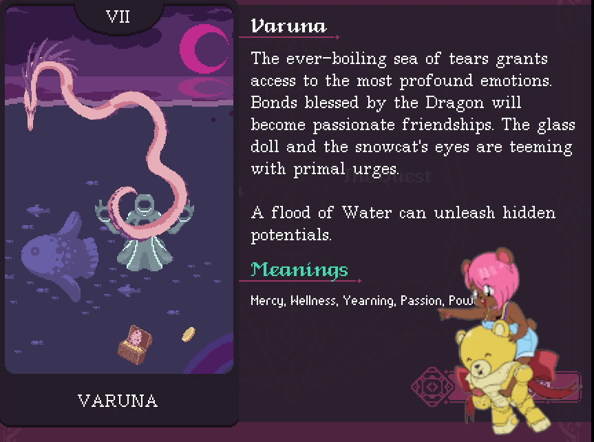 This is where the player assumes control over Fortuna, as she makes a deal with Abramar to escape exile. The details and consequences of that deal are up to the player – the first important choice you have is how this story will end. Abramar teaches Fortuna how to reach out into the cosmic wheel and use its energies to create a brand new tarot.