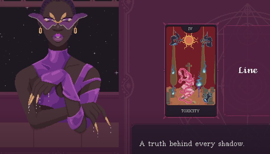 This is our main minigame: creating and designing our tarot cards. Combining this with the main gameplay loop of doing readings to other witches, using their energy from the readings to create new cards is incredibly fun and satisfying. If the game had been just that loop of readings and crafting, I would have been satisfied. This felt like how my Animal Crossing loving friends talked about the loop of that game that I could never get into.