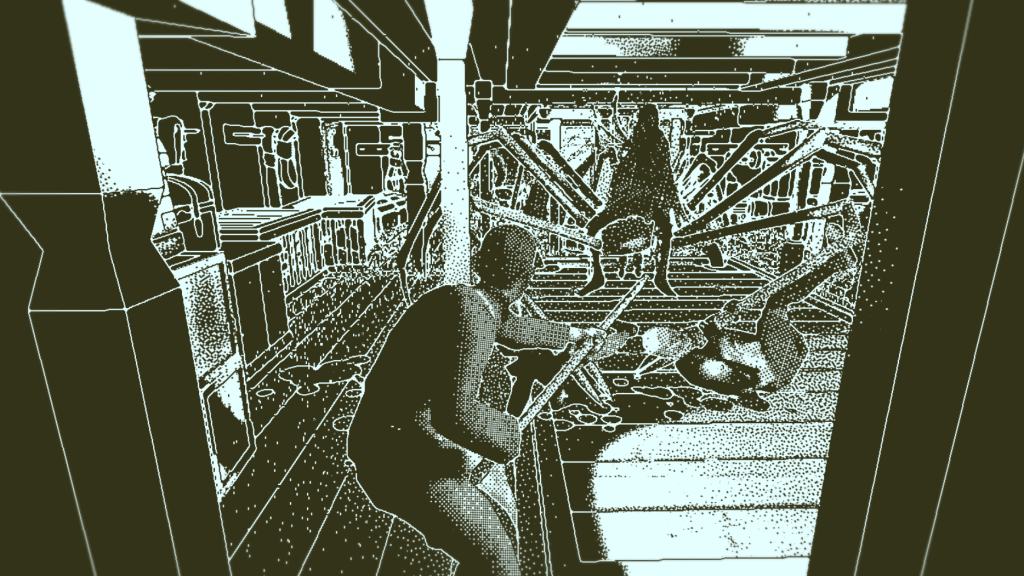 One of the first things to note about Return of the Obra Dinn is its art style. The game is entirely one-bit with a strong use of dithering to shade things in. It’s a strong art style that fits the mysterious vibes of the game and gives it a dated look that feels befitting of the date of the setting. Furthermore, it makes some details murkier, which kinda adds to the game’s difficulty, I feel.