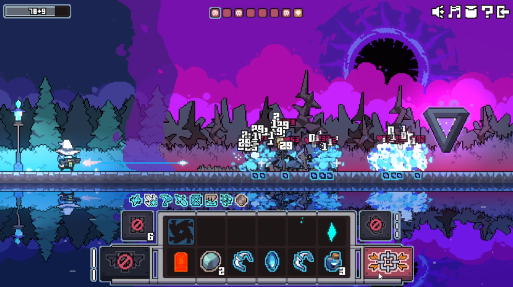Your gun is filled with a random assortment of bullets you have crafted at the start of each round. You gradually build up crafting power from killing enemies to craft a new bullet, though the longer you put it off, the better assortment you’ll be presented with. You can erase bullets too so that you can have a better assortment of stuff for the build you’re going for. For me, I mainly focused on piling enemies with ice. As someone that has a horrible intolerance for cold and the past few months have been agony (well, for multiple reasons), I’m glad to be extending the pain.
