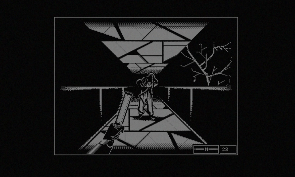 Speaking of Obra Dinn, let’s look at a game that also has 1-bit sensibilities. REPOSE is a game by Bozó Attila Bertold, and it’s a dungeon crawler with a horror atmosphere. You work for the company. What company? Don’t worry about it. Let’s just focus on the task at hand: retrieving oxygen canisters underground. The bodies? Again, don’t worry about it.