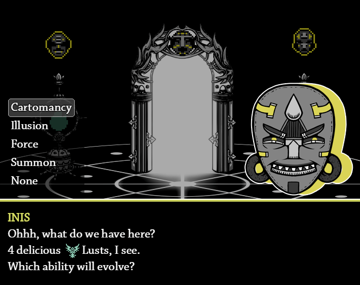 When you finish a character segment, that character gets a small upgrade and if a monster was killed during the chapter, that character acquires sins. Before you choose a character to run, you can invest a character’s sins to improve their skills and stats. It’s unusual that you improve a character by not properly playing as them, but it makes sense in the context of the story: playing a character’s route improves their spirit, and the character’s spirit is really what’s doing all the fighting. Why can’t their own spirit deal with the horrors? Uhhhh, I don’t know.