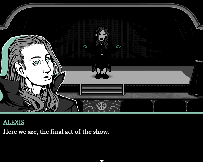Frail Hearts Versicorae Domlion is a 2022 game by Sezhes, a horror themed RPG with interconnected stories. You choose a character and play through part of their story. When that wraps up, you could play on or witness the antics of another character with Alexis. See everyone’s stories through, and maybe you’ll see to the end of the little play.