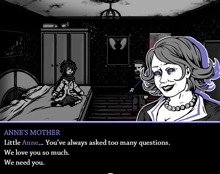 Anne in the meantime doesn’t face any grand problems, but is just fighting herself. In dealing with the stresses of school, the expectations of her family, and her unhappiness with herself, her troubles manifest in a dream world where she fights her personal horrors. Anne’s story feels like it’s in the wheelhouse of more typical RPG horrors and… it just kinda ends? She decides to just relax a little and move on and it just feels really anticlimactic, especially when she considers dating a guy that’s honestly just kinda annoying and doesn’t offer good chemistry. Good for her, I guess?