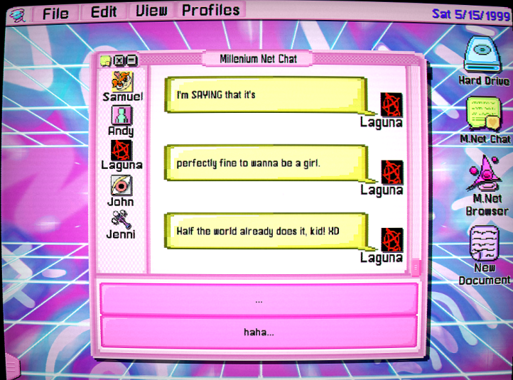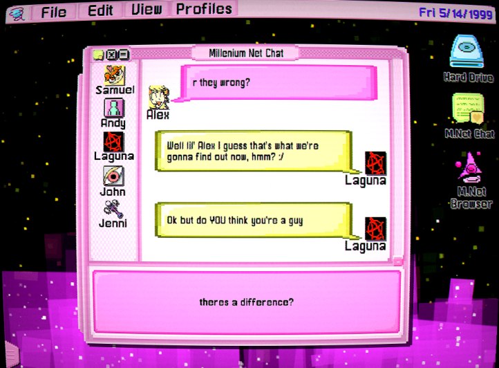 Secret Little Haven is a story about a young trans woman realizing who she is through the lens of the early internet. The main interface of the game is the chat program where Alex talks to all her relations. You have to wait seconds between character dialogue boxes, which provides realism and grants a natural tension in conversations. You can also poke around side stuff, including the local anime fan forum that really made me miss forums.