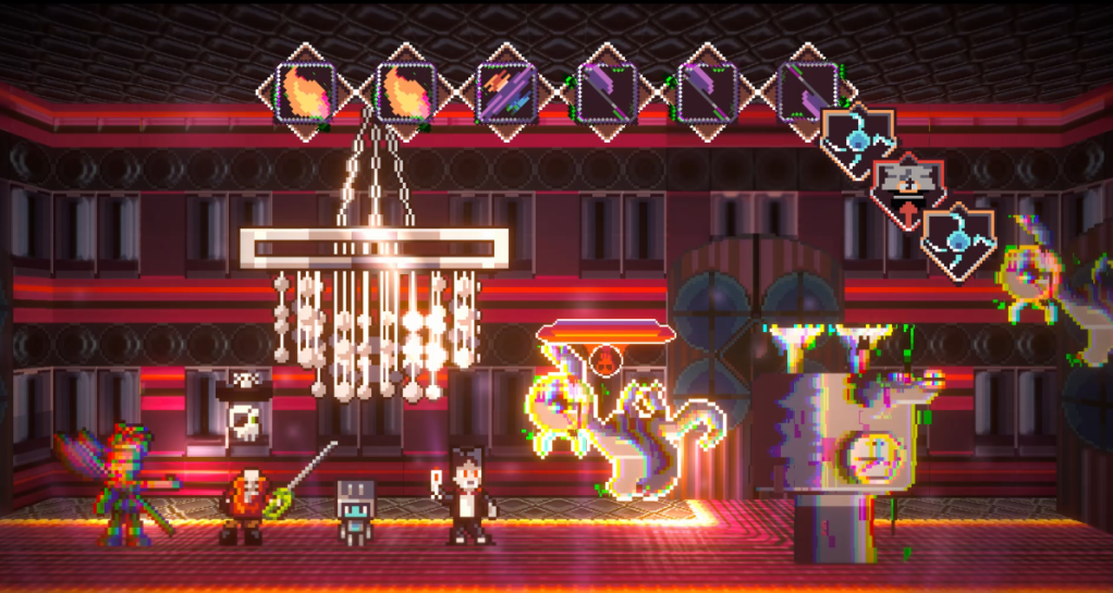 REGJRPGAT is less of an RPG and more like a puzzle game. You pick up clues on the surrounding areas to figure out how to proceed and get some kind of handle on the cast of characters. RPG combat has you pressing a combination of buttons to perform a series of moves, though there are secret moves that’ll go off when you input the right combo…