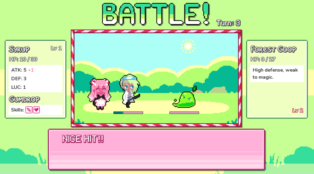 So, speaking of Syrup, we’re looking at Syrup 2: Candy Alchemy RPG. Syrup the candy alchemist crafted the Ultimate Sweet… but she wants more. Syrup’s on that CEO grindset, she has the soul of an empress. She wants to craft new specialty candies. She wants to forage for fresh new ingredients. She wants to fight monsters for rarer ingredients like she’s on a Laois Touden mindset. She wants to do on demand orders. She may not have aimed to grow closer to the people around her, but she will.