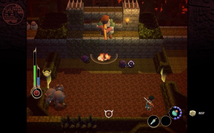 Bump into something and Tets will slash it or interact with it. You gotta be brave, you gotta run Tets into an enemy’s weak point to hurt them. Just idlying about and running away from your problems won’t fix them, will it, Tets?