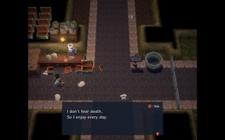 Despite his adherence to his mission, Tets taking the mission to begin with is an aberration from what’s normal itself. Tets is clearly running away from something, and while he fondly looks back on past experiences as his flavor text on some map landmarks paints, he’s trying to move on from all that and find a new normal for himself.