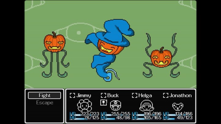 Jimmy’s dream world brings a few new additions for its re-release, and one of those is a new hard mode! On hard mode, enemies adopt new moves and behaviors. For example, the Scriff Tribesman enemies will buff everyone’s attack at the start of a turn, making them a must to take down first. Though, the hard mode changes are more felt with the boss battles. Like, the Rotting Jack O Lantern is a dangerous magic user by itself… but hard mode gives it two new completely new buddies to help it out after lowering its health a bit.