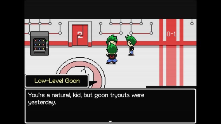Back on Shinryu, I thought that it was weird that it was so stereotypical. But in revisiting the game, it makes perfect sense given the other areas in the game. It’s all Jimmy’s dream world and some areas and things are based on his perceptions of various things. The Petty Thugs is a generic ineffectual villain organization from Saturday morning cartoons, with its leader being inexplicably cool – or trying to maintain the veneer of coolness, anyway. Mute Notes feels like a send-up to noir stories, with your local detective, a late-night joint to hang out in, and murder happening. Everchip is the most stereotypical old fantasy JRPG, from everything having blocky graphics to the villain taking the form of an evil chancellor. All of the nightmare dungeons can essentially be seen as by-products of Jimmy engaging with horror stories and dreaming about them; special mention goes to Turnbuckle’s dungeon, which straight up feels like Jimmy played something like Misao and plays like a standard RPG horror for most of it.