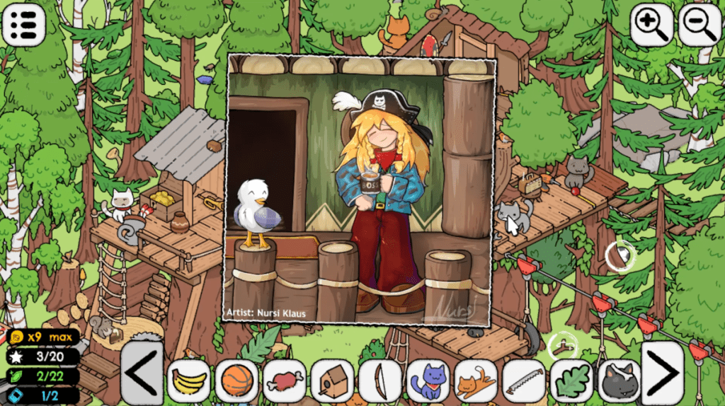 Clicking objects usually elicits small animations or sound effects. Maybe it won’t give you progress, but petting cats and hearing their meows is pretty fun – after all, cats are very much in right now for games. Clicking on buildings will give you a view of its insides, while chests open up to show what they hide. Some objects move out of the way to show that they were hiding an important item, and this is much more pronounced in the game’s hard mode, where some important things are locked behind something and you have to search for something different that will open it up.