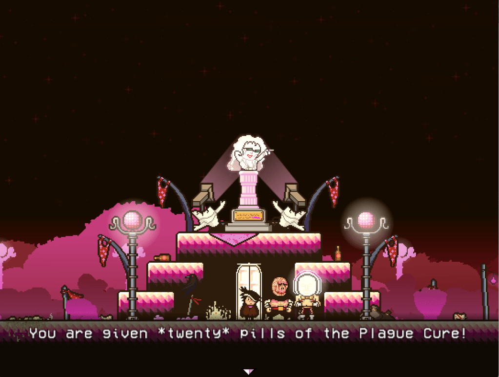 LISA the Undone climaxes with a final fight against the stubborn asshole judges, who unite in spite of their differences to fight the people threatening the status quo. Even if you’ve played Buddy peacefully, you can spend the chapter gathering tools to make the battle go by smoothly. For me, Buddy was the GOAT at playing support and throwing firebombs while Rando’s punching the shit out of everyone.