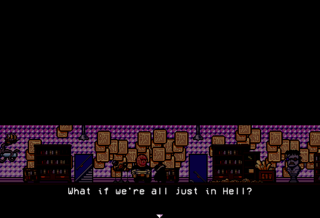 However, that doesn’t mean this isn’t worth looking at. My final save file boasts around 7 hours of playtime, and I know that there’s a bunch of stuff I skipped. It’s a game that definitely invites replays, so I’m sure a lot can be dug out of the game for the Playtime-cels. And like Scholar of the Wilbur Sin, the game folder openly has the project files available, so you can dig in and study the game’s design – and perhaps you can make your own follow-up to LISA the Undone.